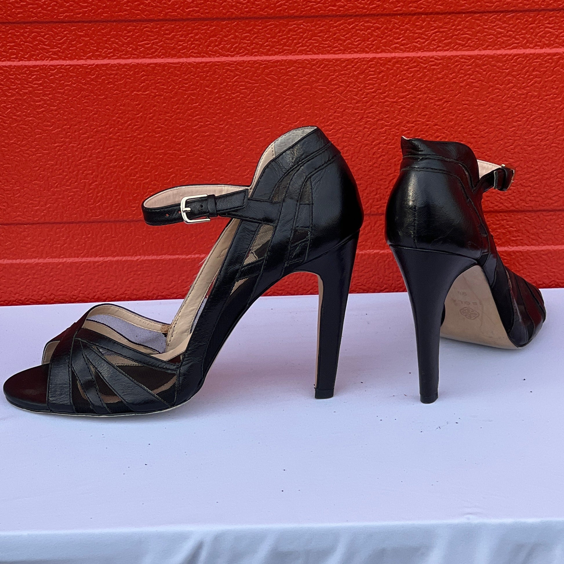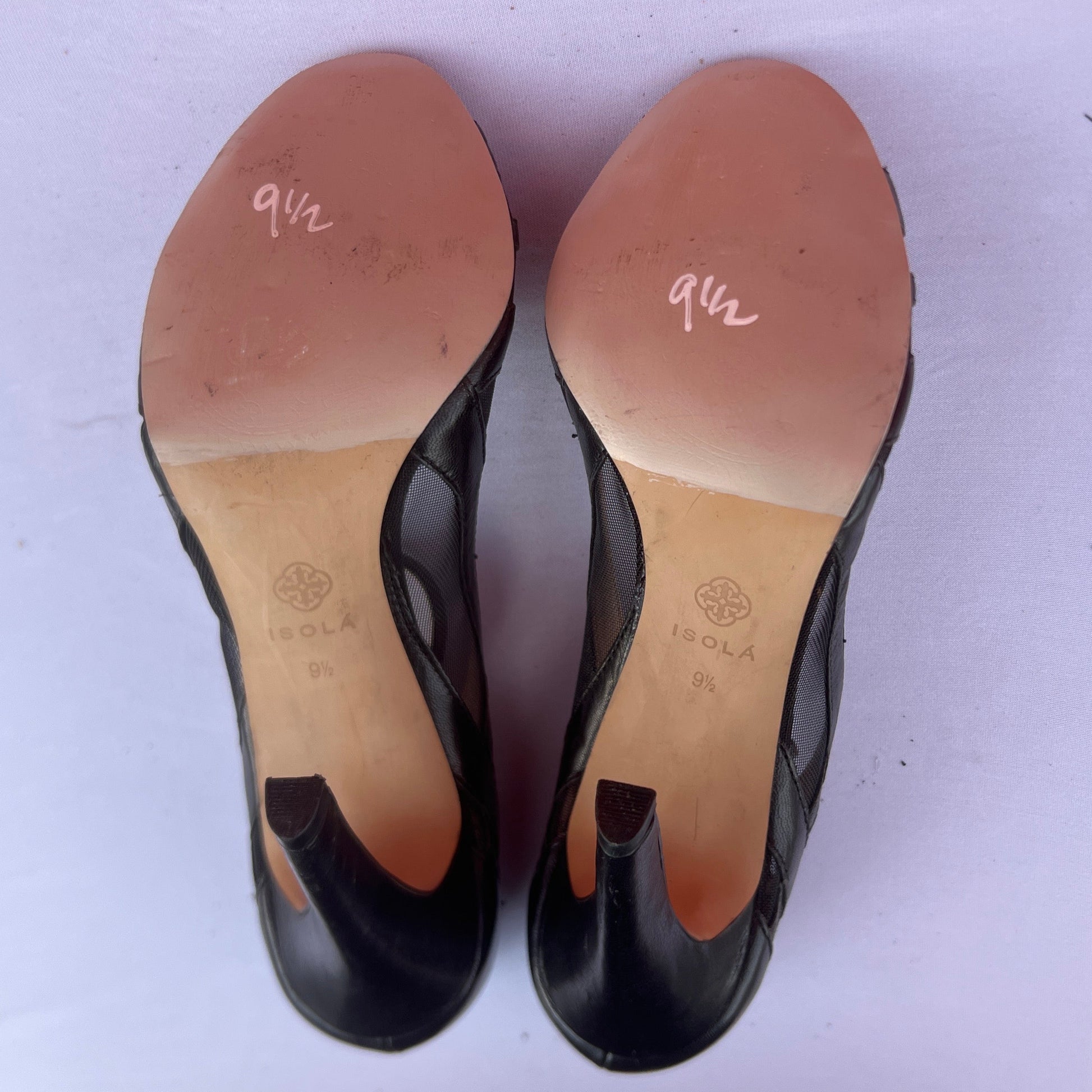 Isola Women's •Braewyn• Peep-toe Ankle Strap Sandal 9.5M Mesh/Black Leather