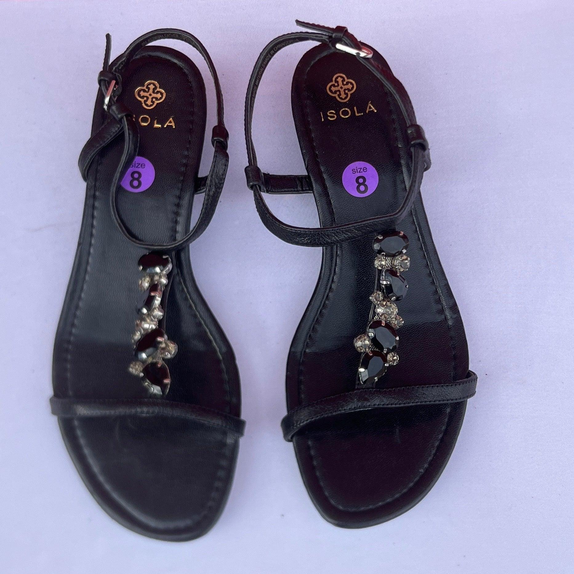 Woman’s Isola Trista T-strap Jeweled Sandal 8M BlackLeather