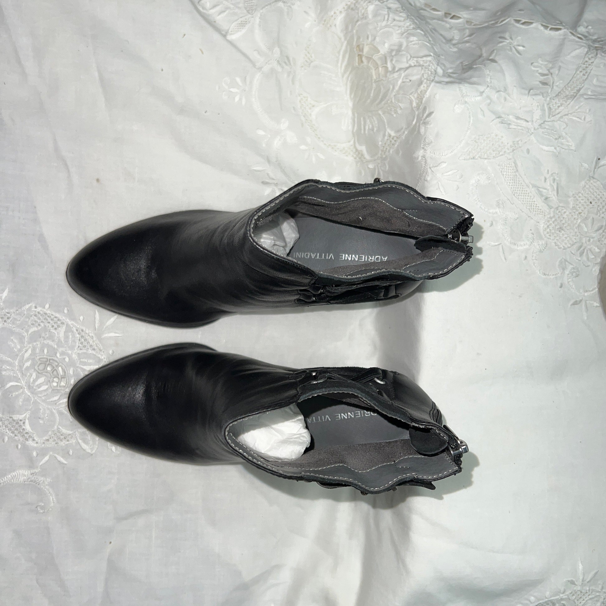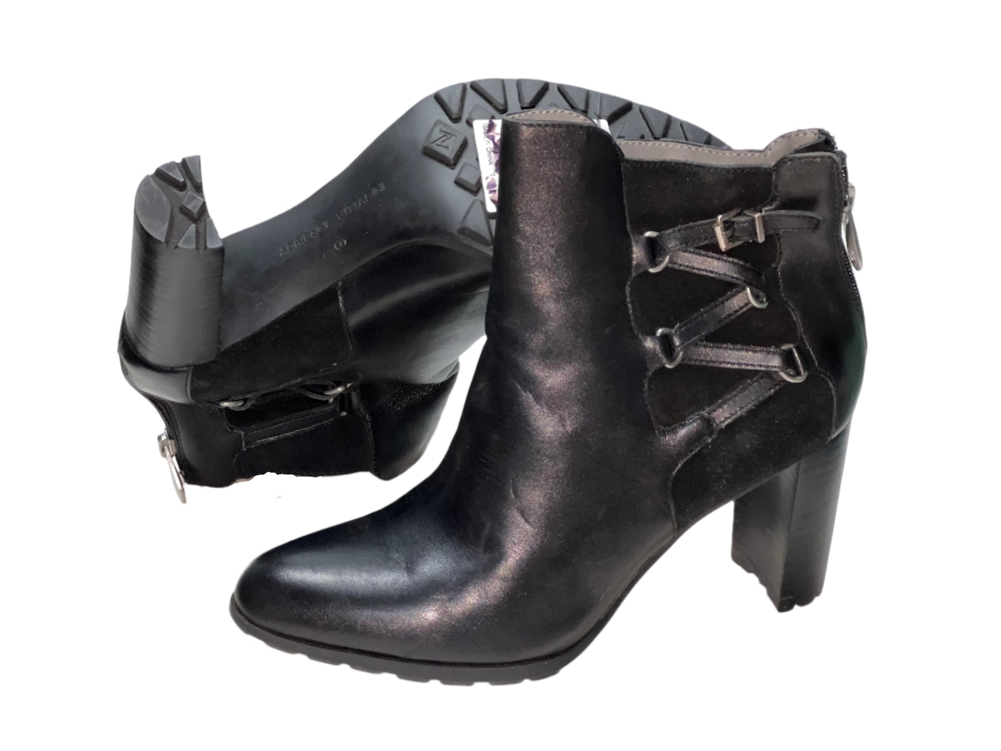 ADRIENNE VITTADINI Women's Trixie Heeled Ankle Bootie 6M Black Leather