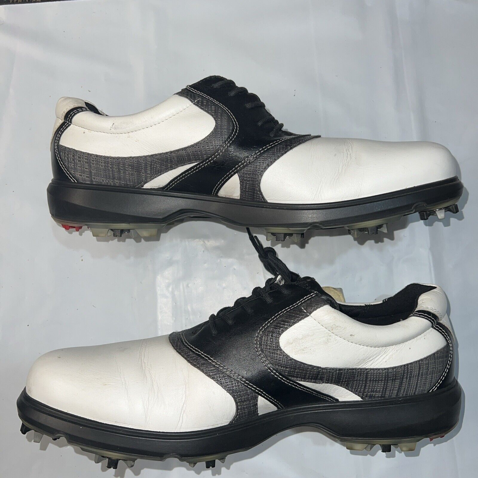 Men’s Ecco White/Black/Gray Leather Spiked Golf Shoe 44EU