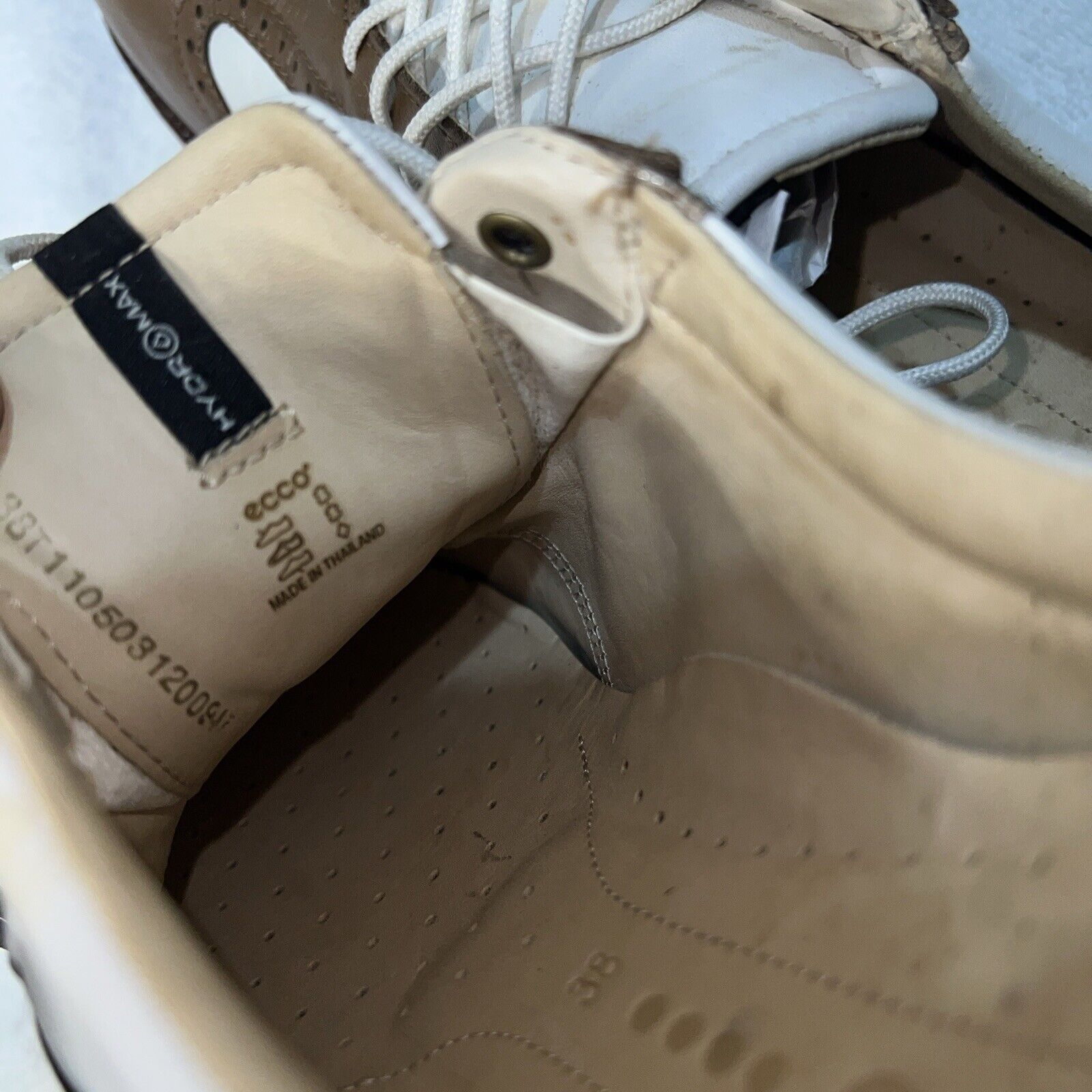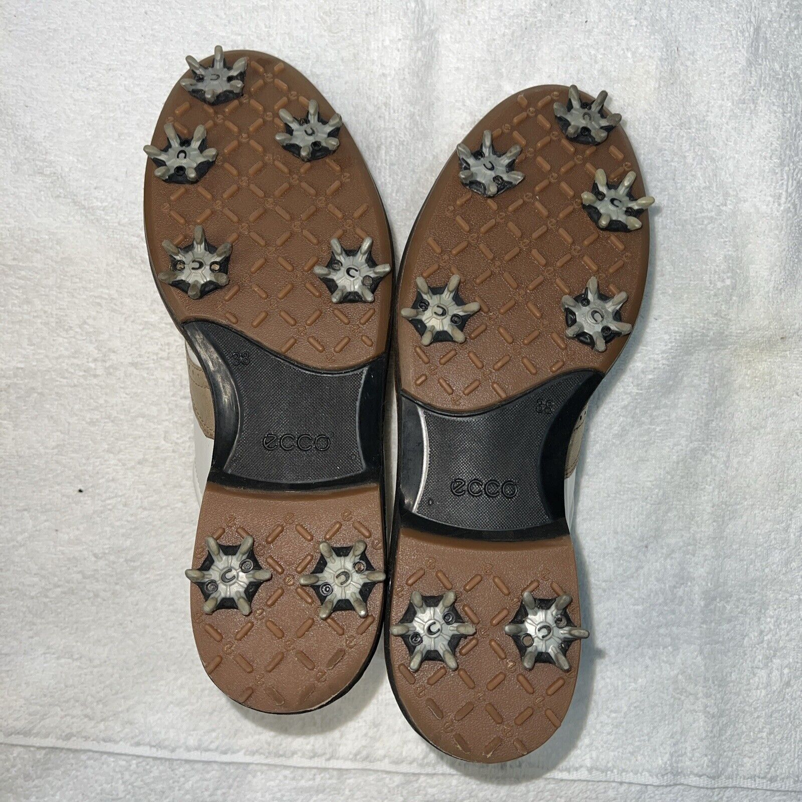 Women’s Ecco Spiked Golf Shoe 38EU White/Brown/Metallic Hydromax Leather