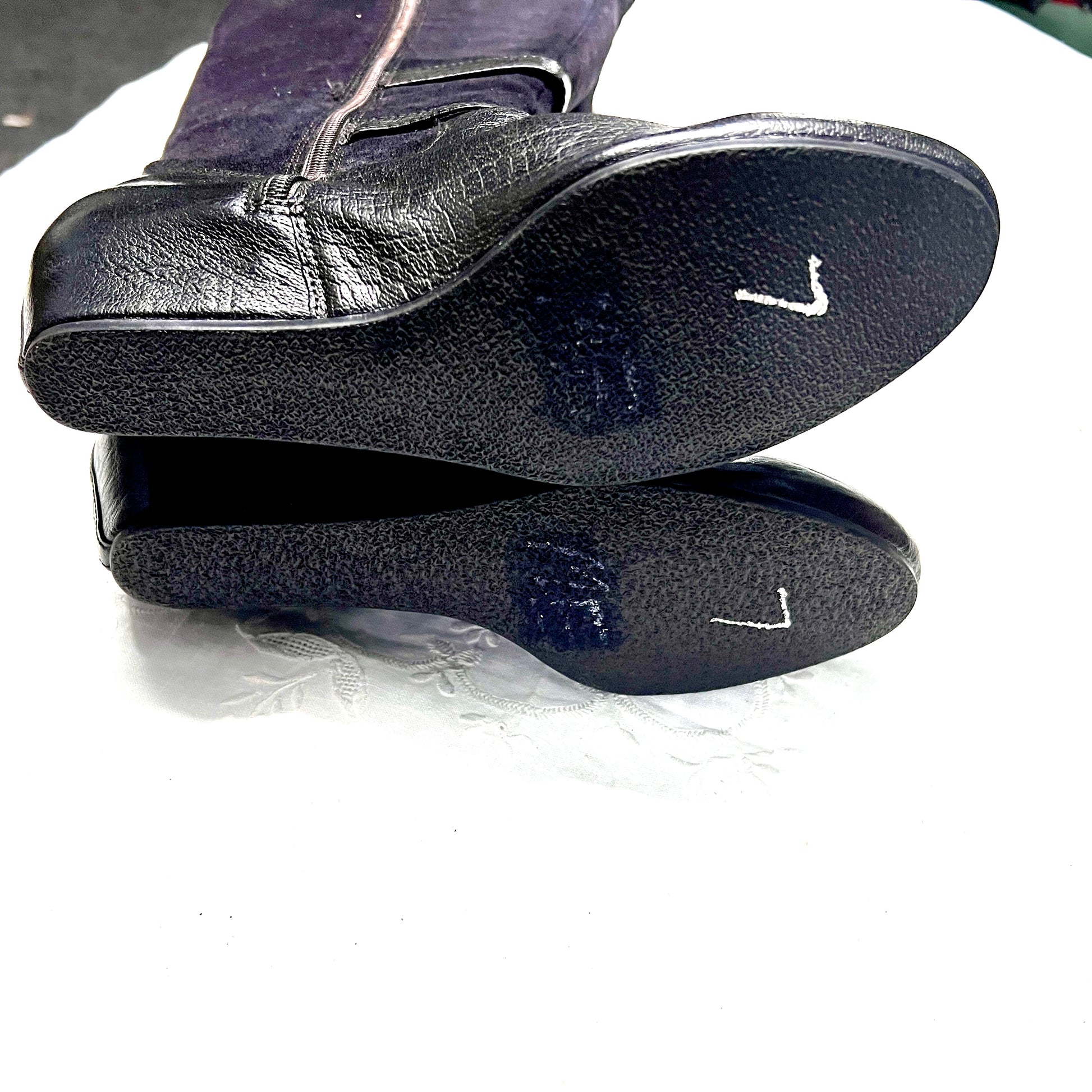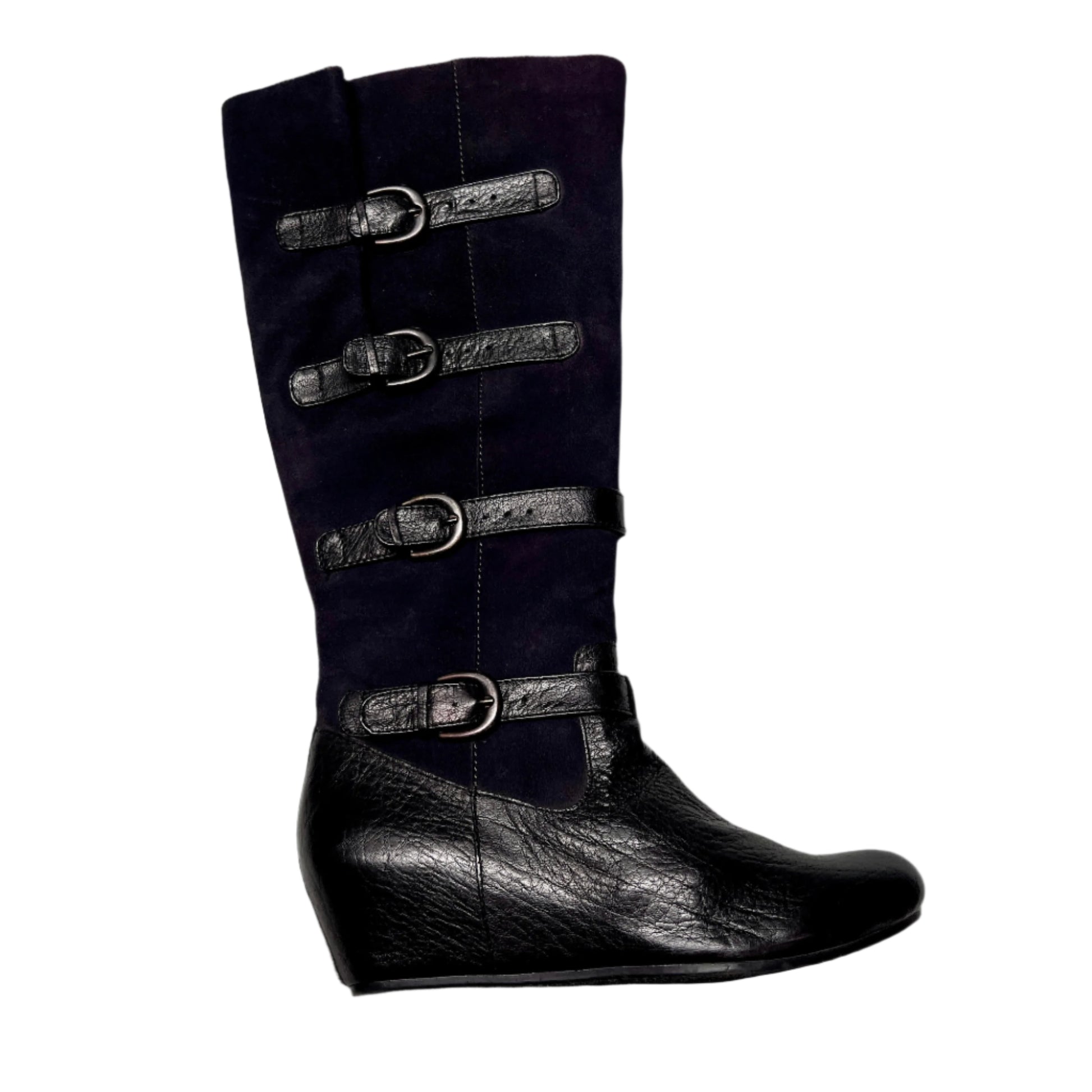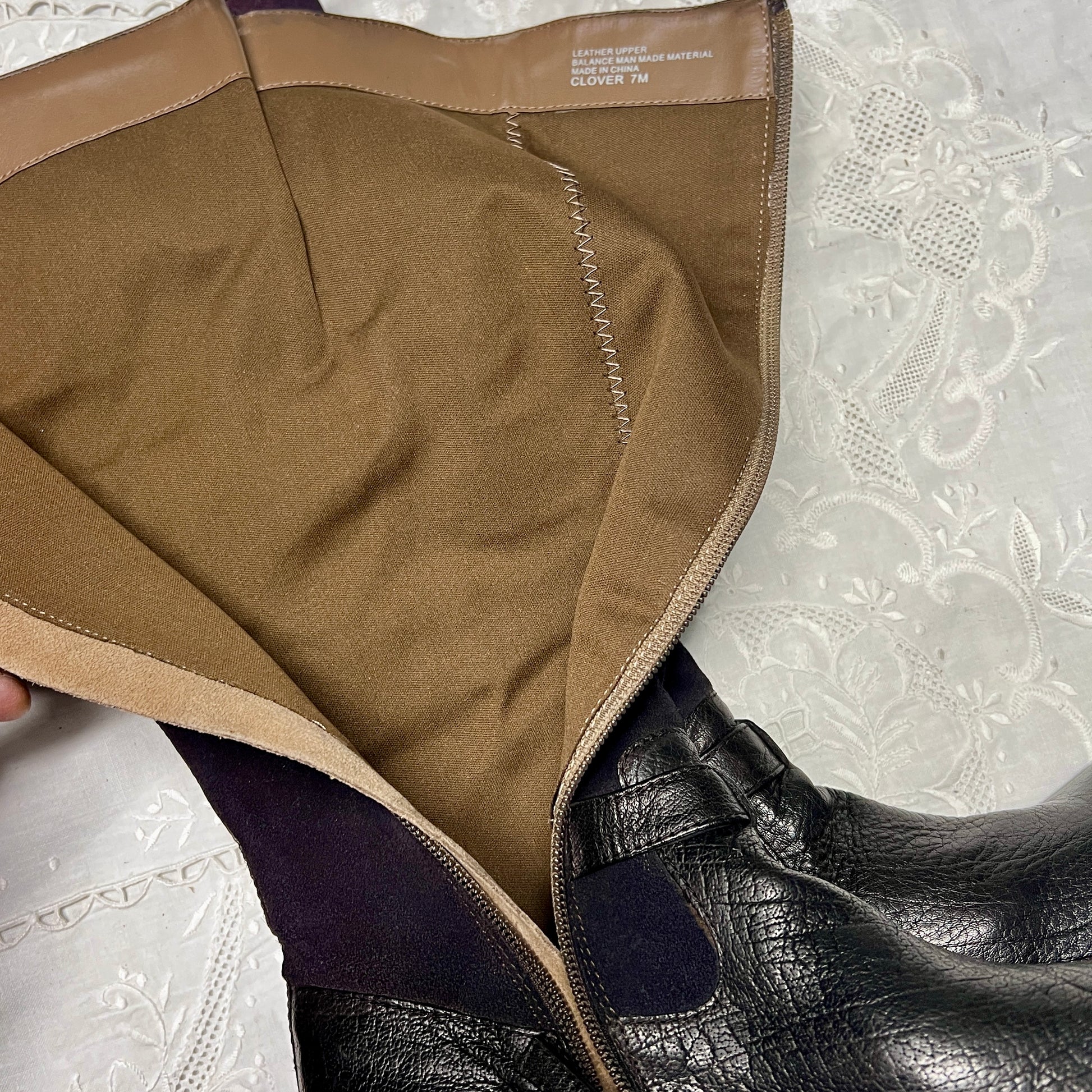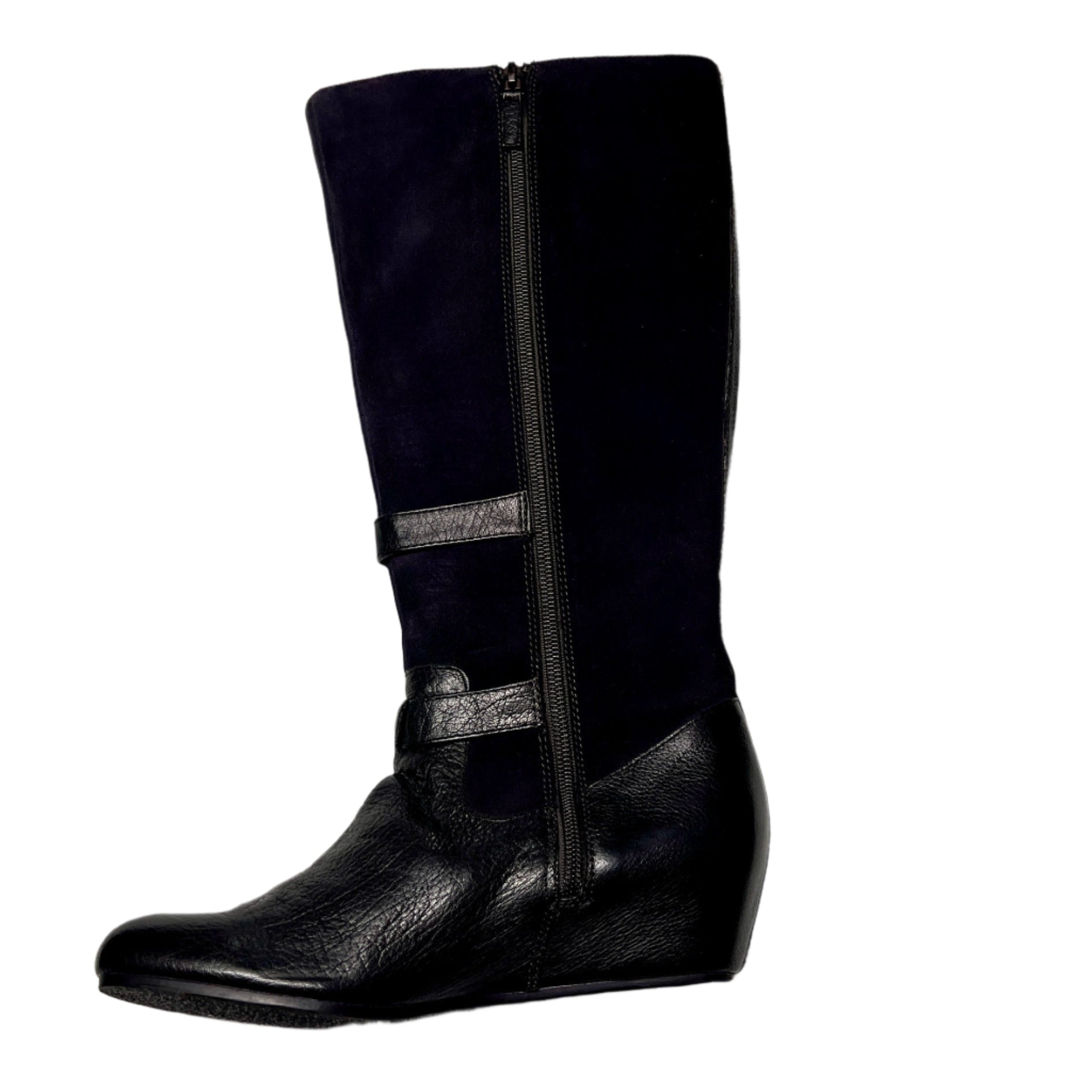 Crown Vintage •Clover• Leather Hidden Wedge Boot -Expandable Wide Shaft 7M Black Leather