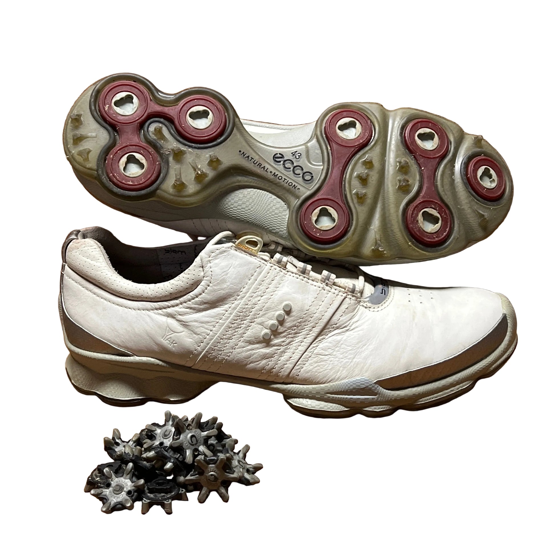 Men’s Ecco Biom Cleated Golf Shoe 43EU •White/Grey• Hydromax Yak Leather