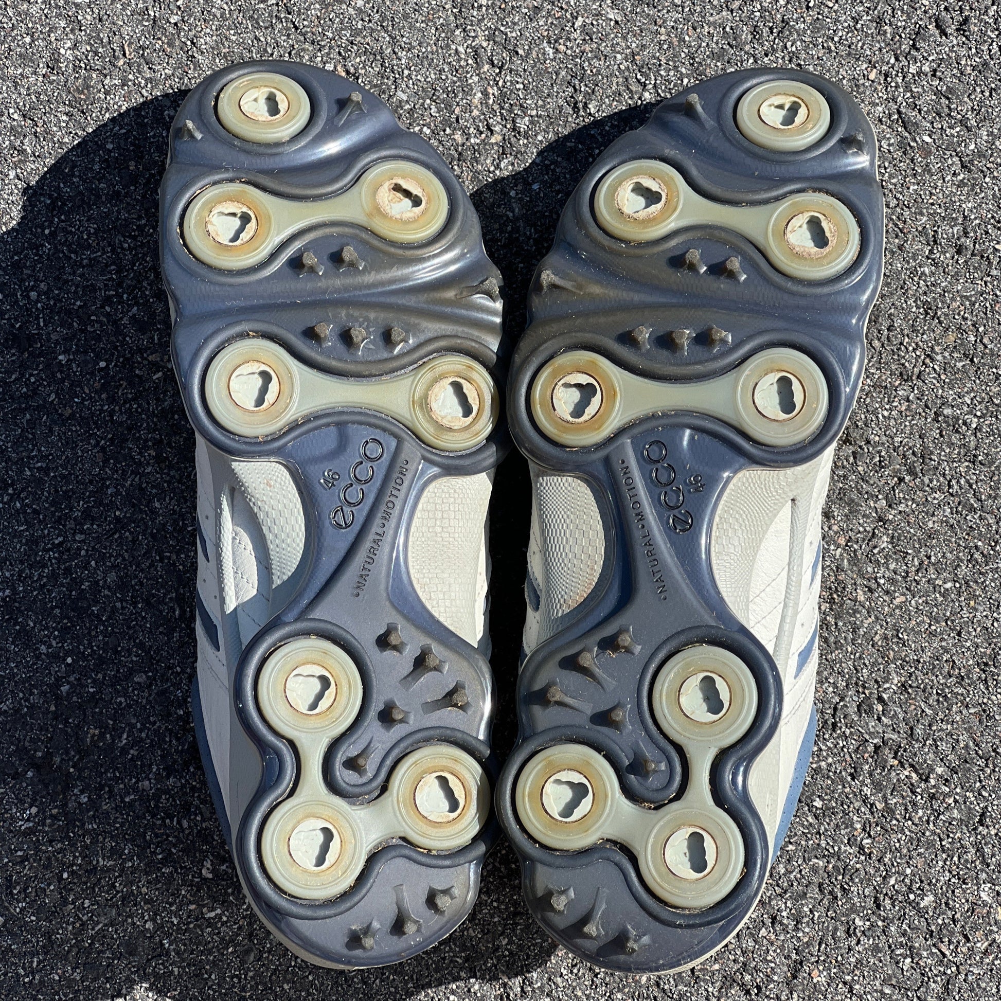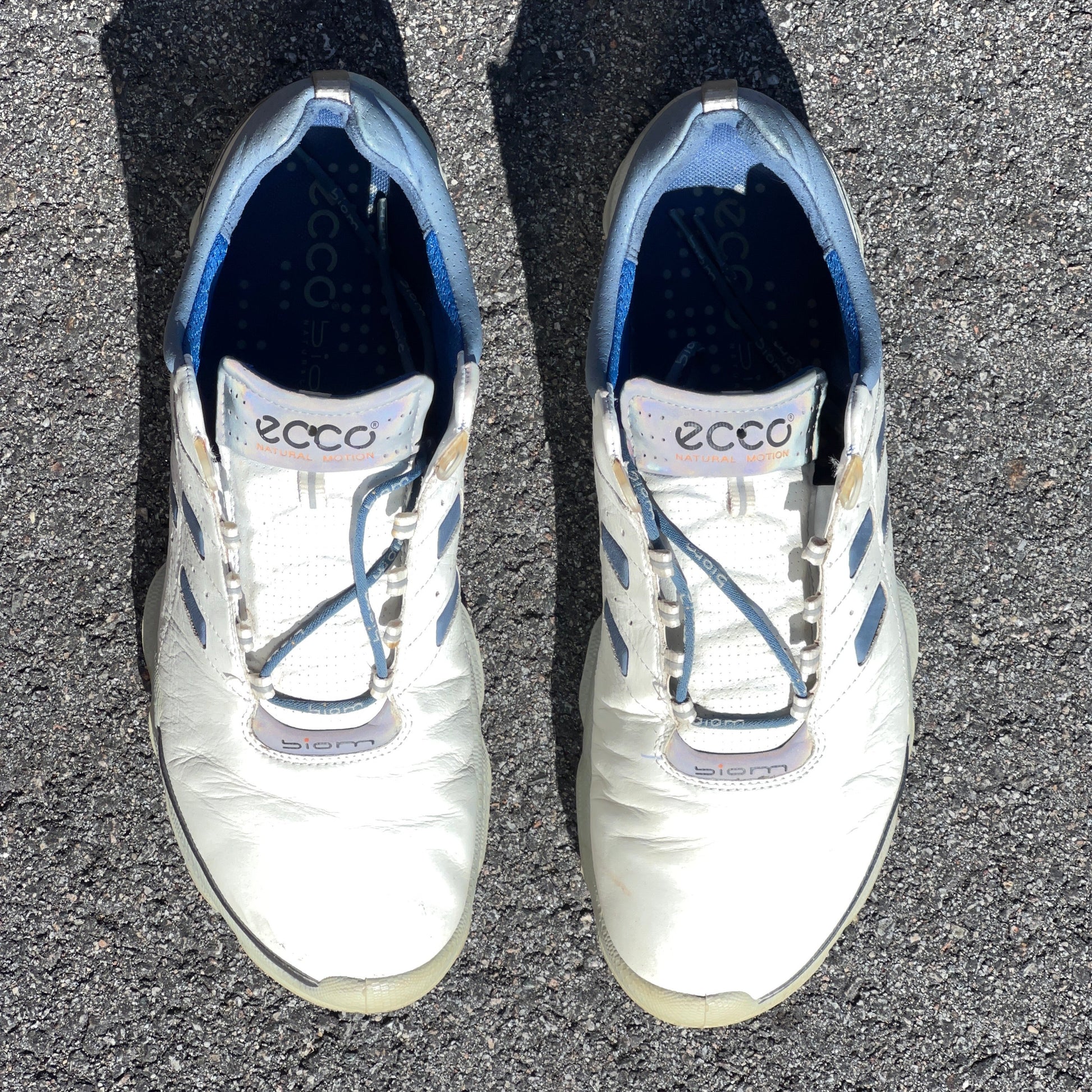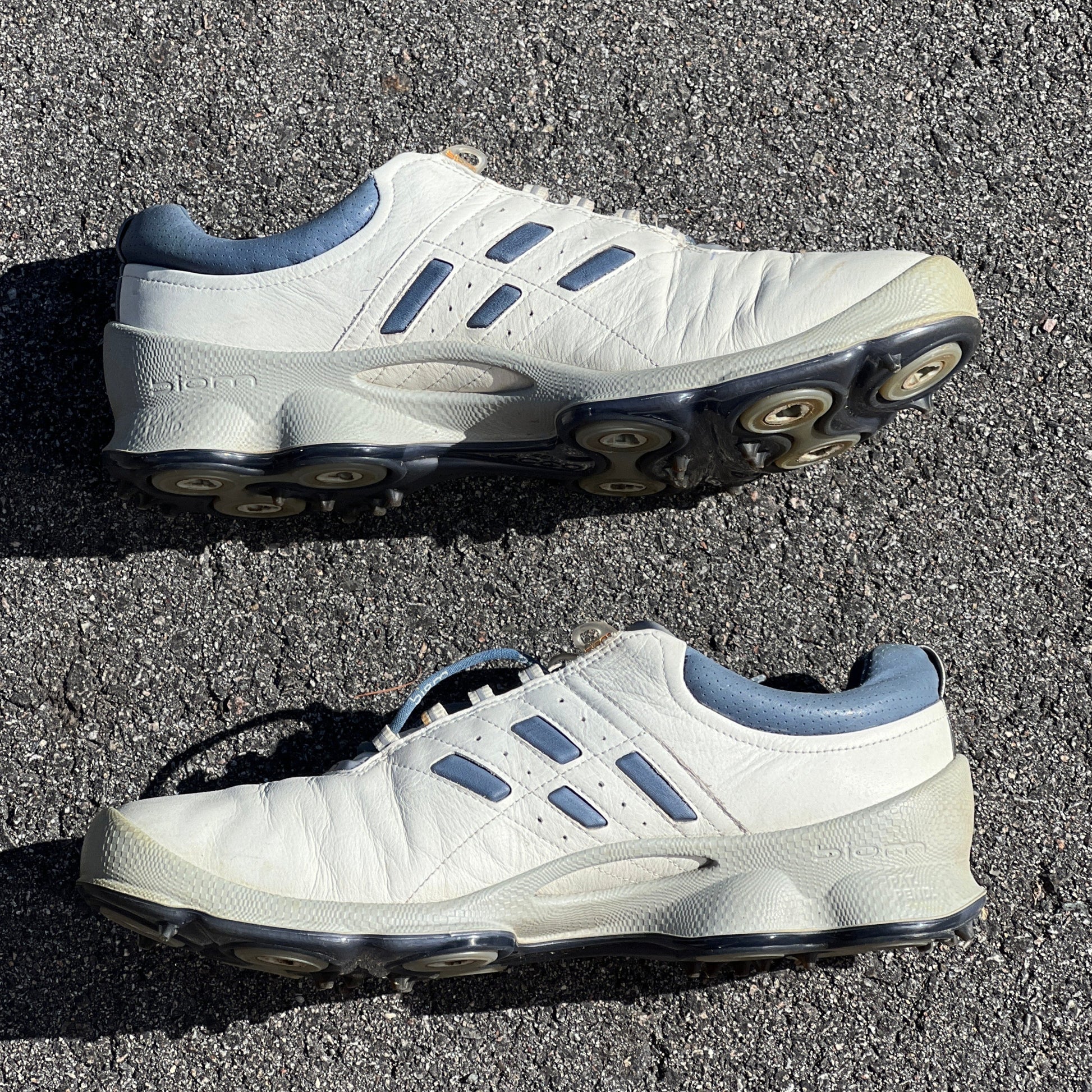 Men’s Ecco Biom Cleated Golf Shoe 46EU •White/Blue• Hydromax Yak Leather