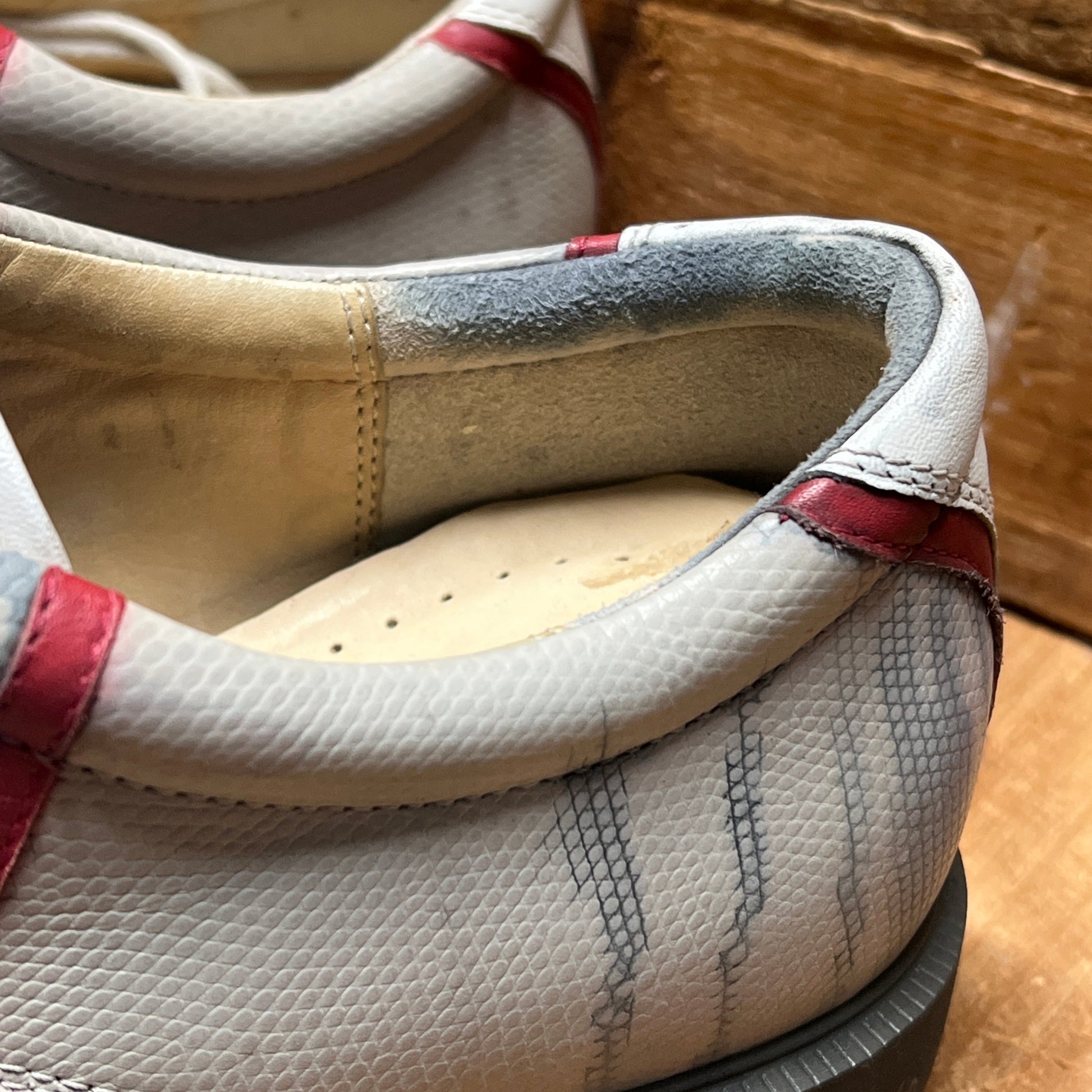 the shoe's are stained and have indentaion marks on upper