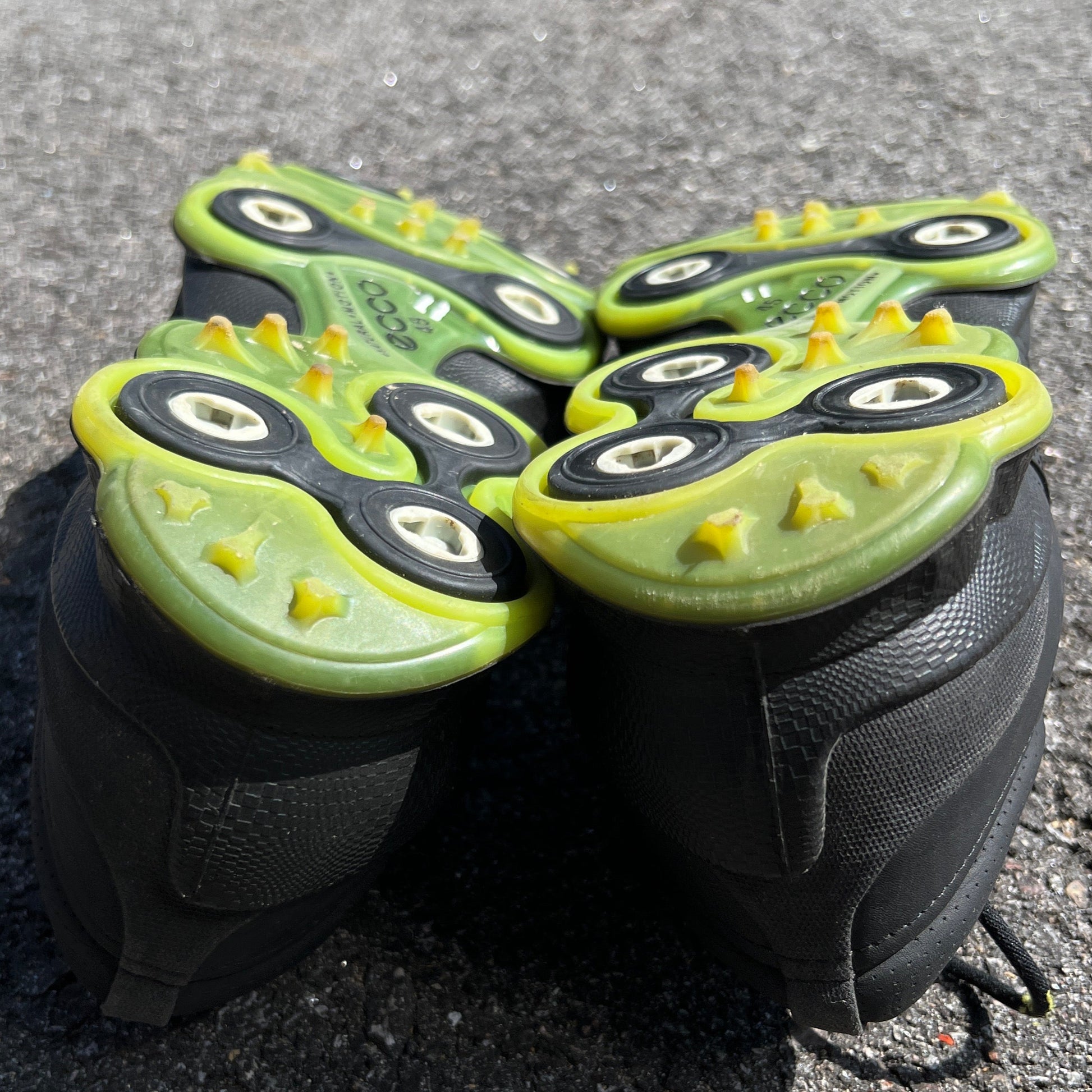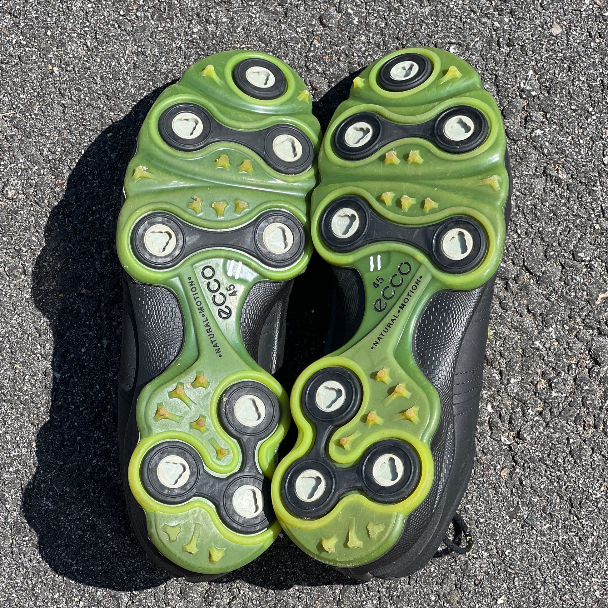 Men’s Ecco Biom Cleated Golf Shoe 45EU • Black/Citron • Hydromax Yak Leather