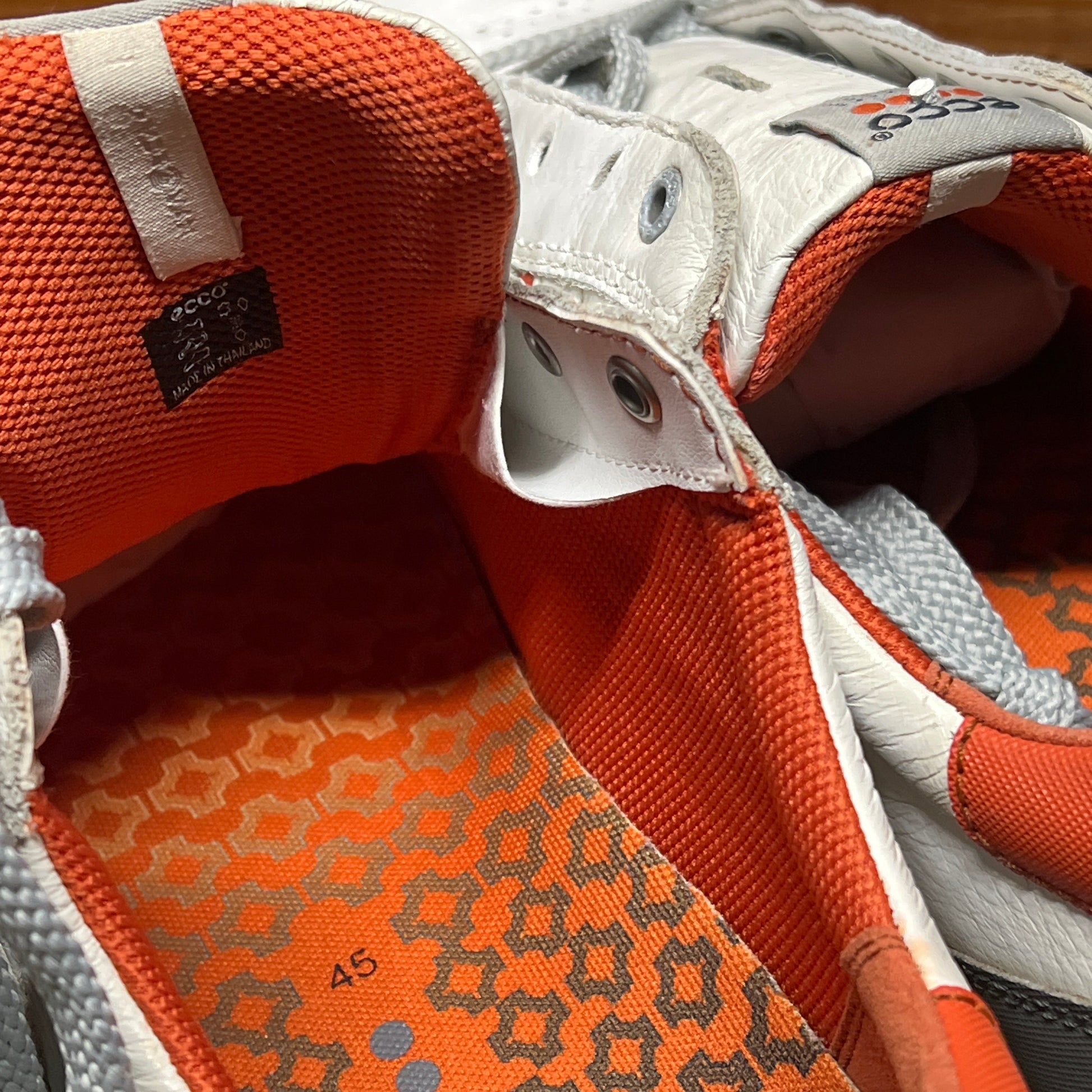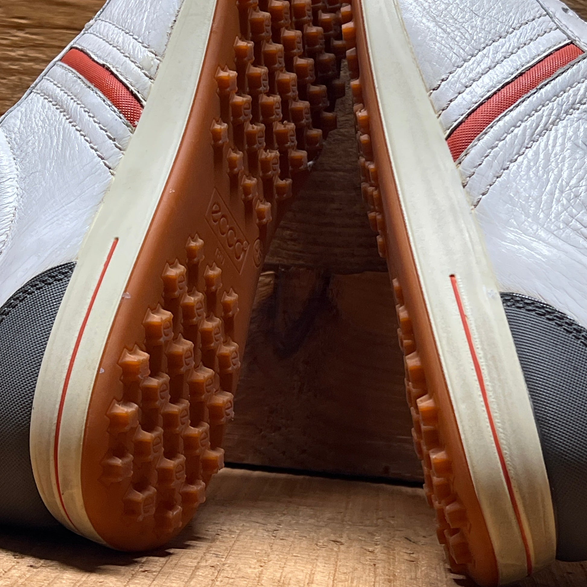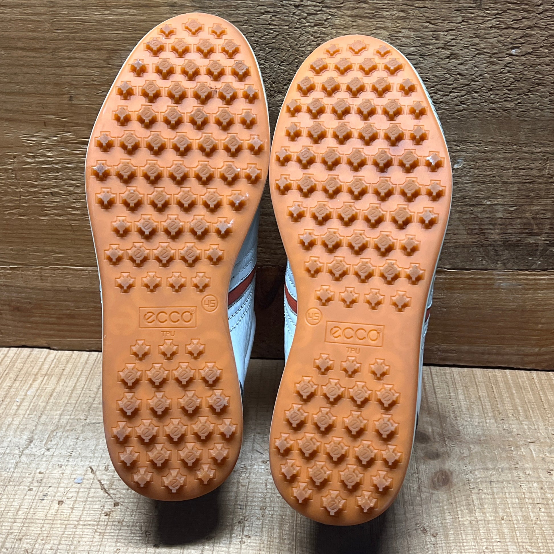 Men’s Ecco Premier Cleat-less Golf Shoe 45EU •White/ Grey/Fanta• Hydromax Leather