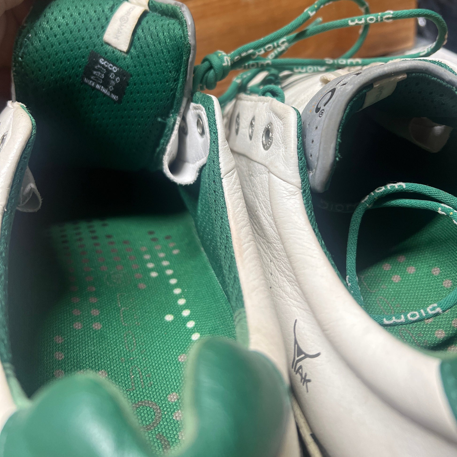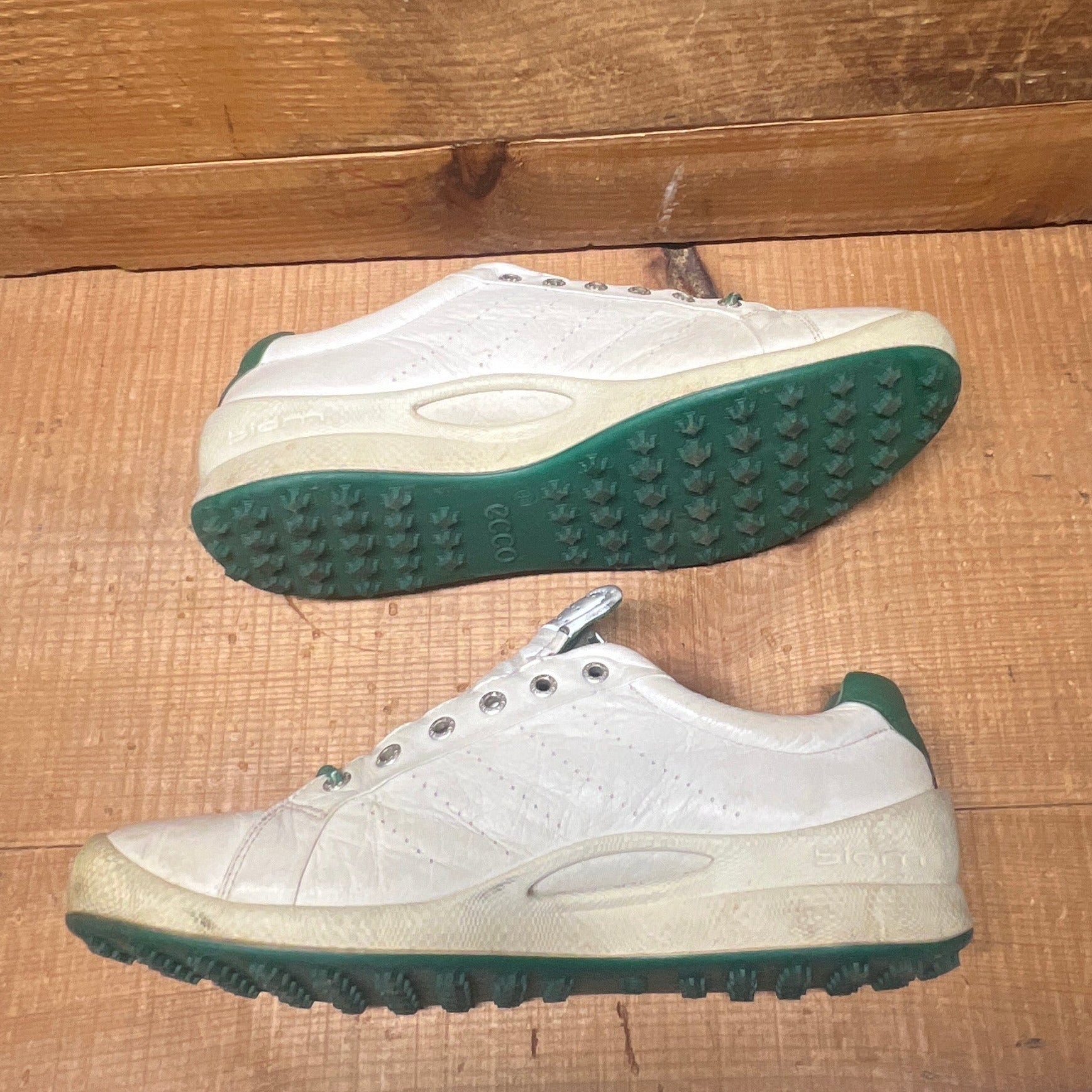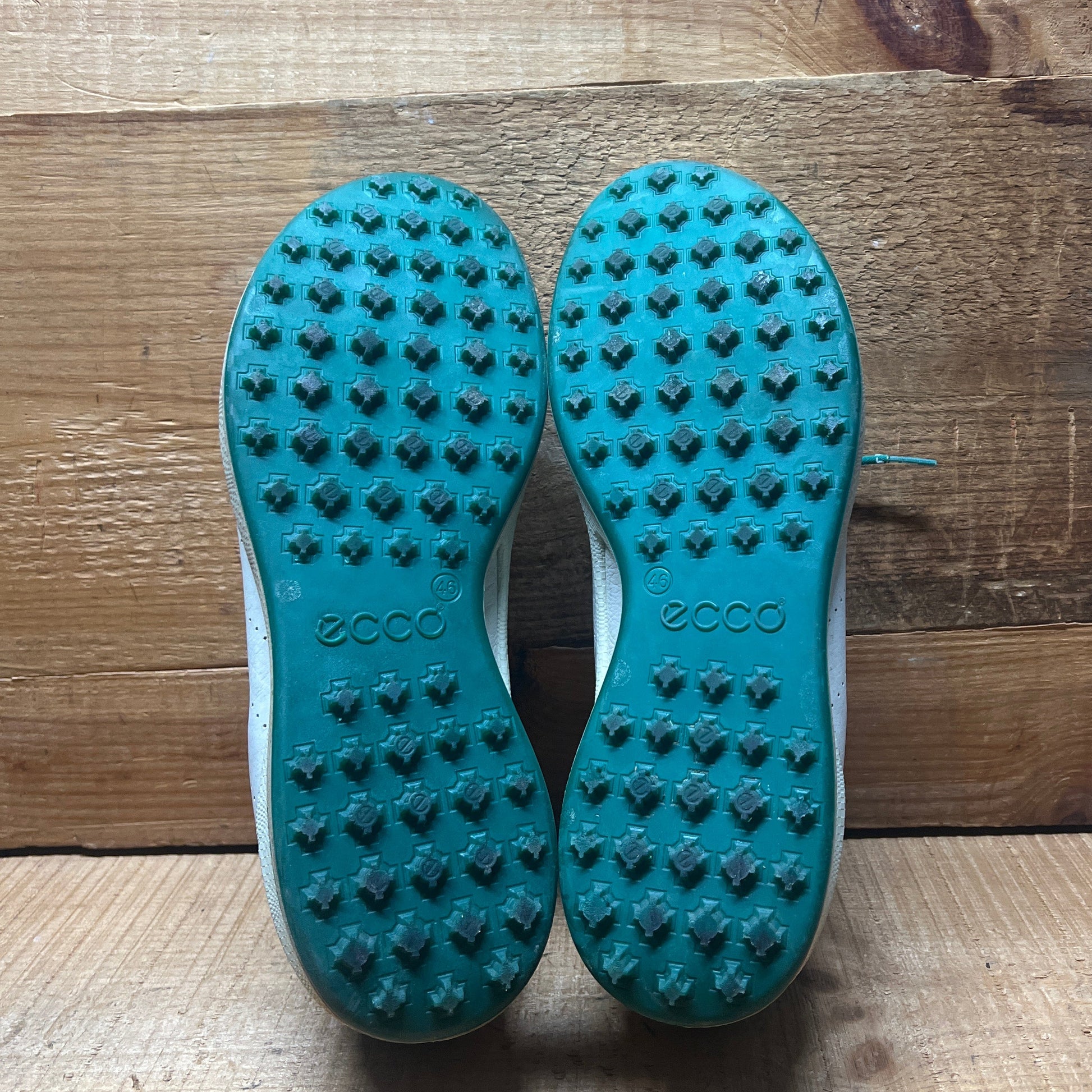 Men’s Ecco Biom Cleat-less Golf Shoe 46EU •White/Green• Hydromax Yak Leather