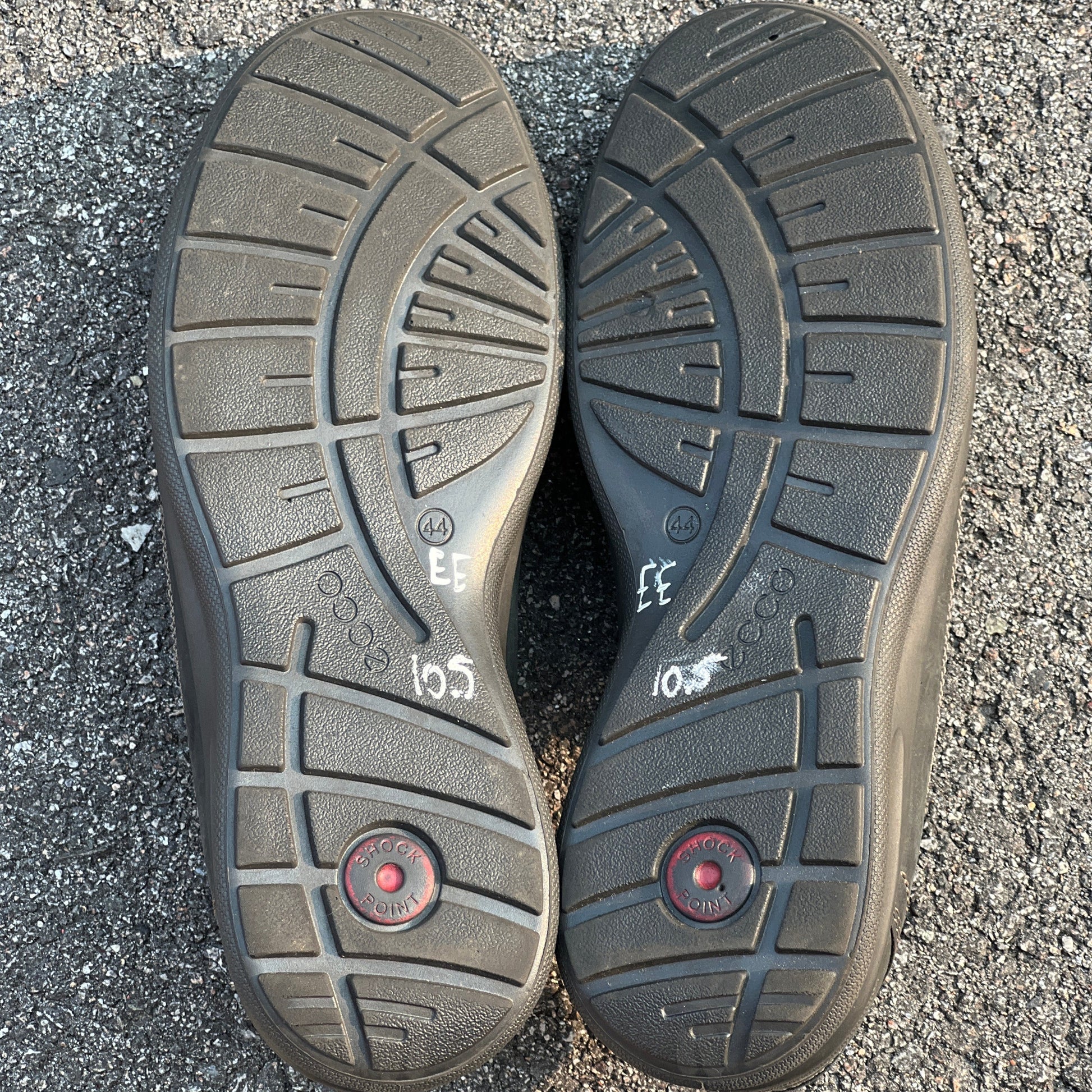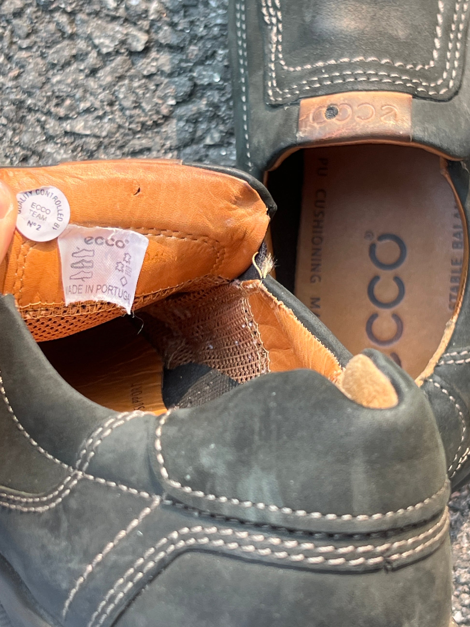 These preowned Men’s Ecco Twin Gored slip-on casual shoes are in solid condition, showing only a few light scuffs or stains. No rips, tears, or damage—just ready to add some easygoing style to your day!