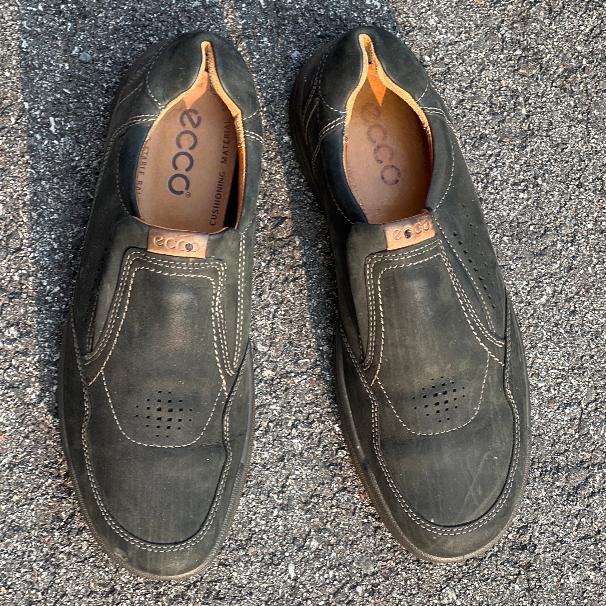 Men’s Ecco Twin Gored Slip-on Comfort Casual 44EU •Black NuBuck Leather • Made in Portugal
