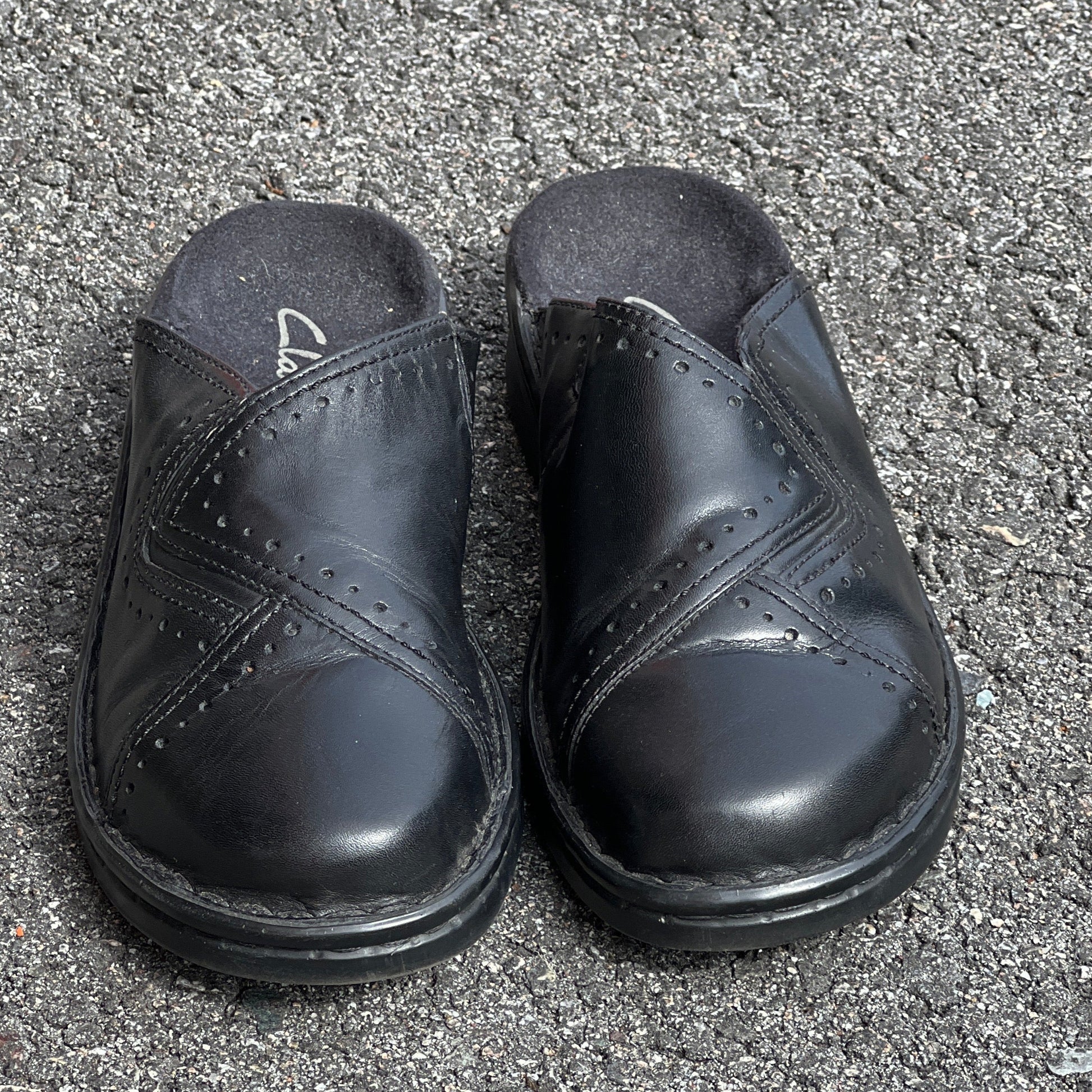 Woman’s Clarks Open-back Clog. 7W Black Leather
