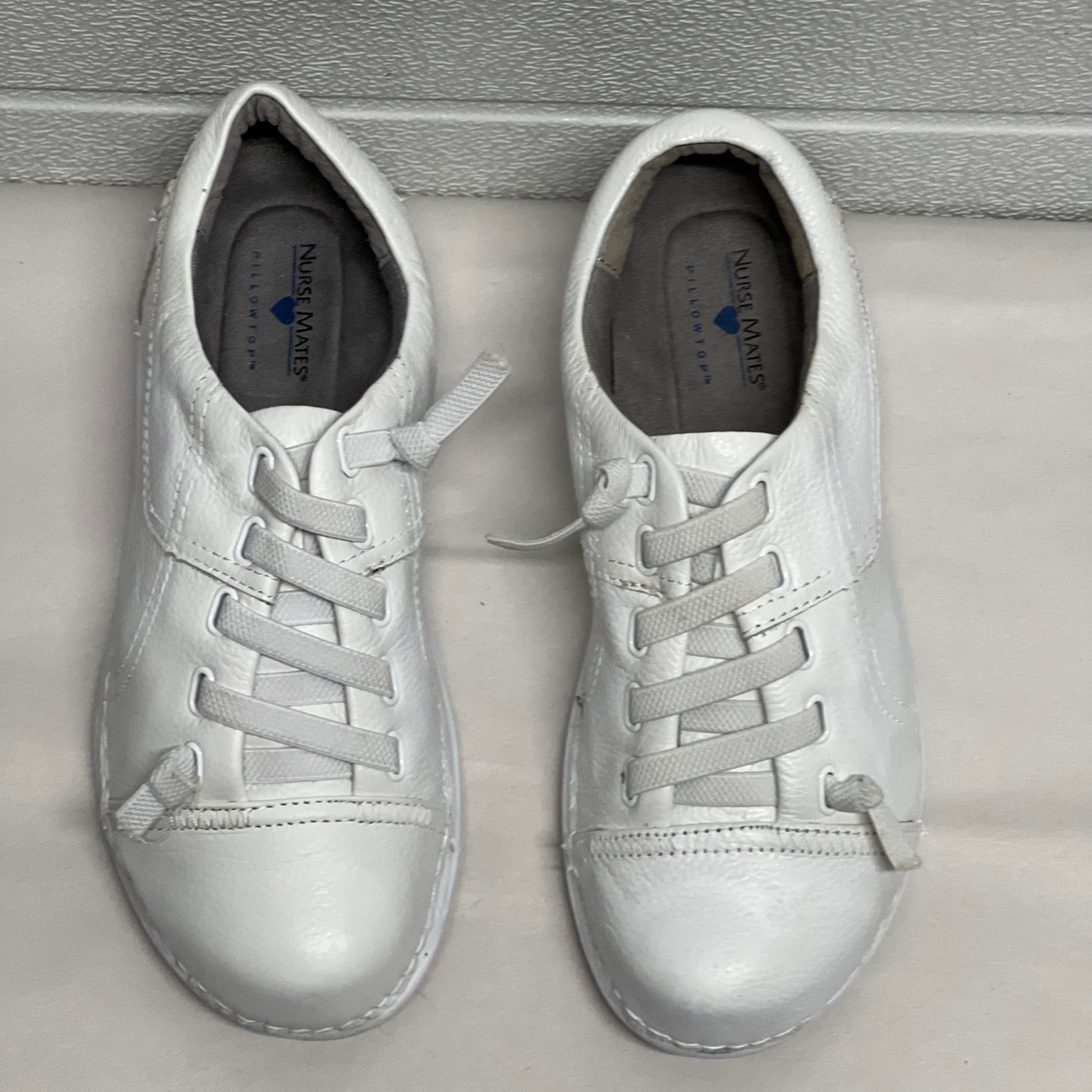 Women’s Nurse Mates Tibby pillowTop lightweight stretch laced Cap toe 6.5W White Leather